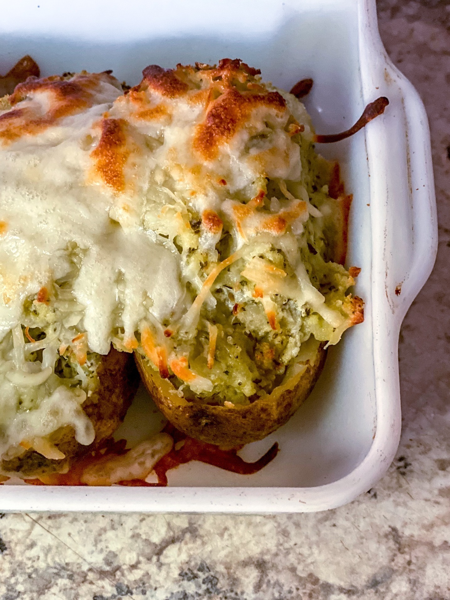 Frezing these pesto twice-baked potatoes is a cinch! Once they’re stuffed, I wrap them tightly in aluminum foil and store them a few at a time in a large resealable ziplock bag.