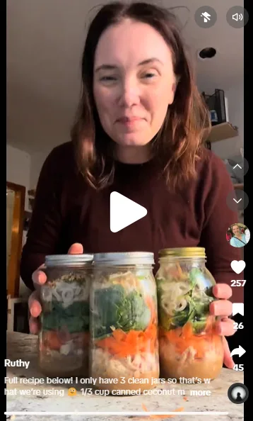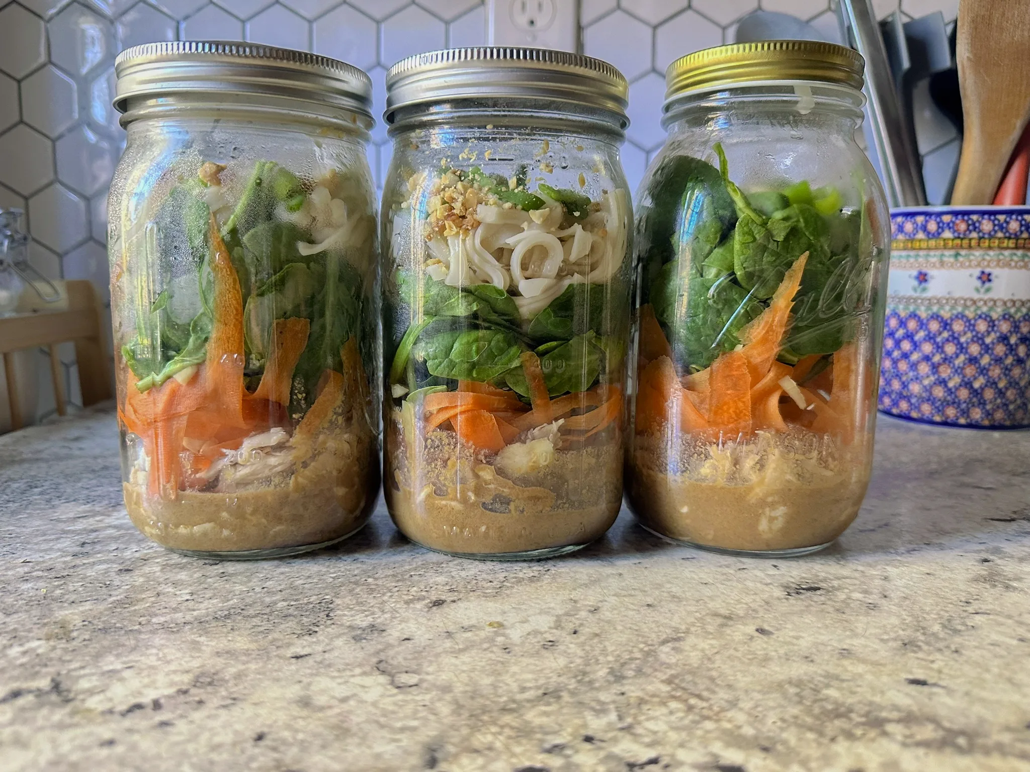 @percolatekitchen Full recipe below! I only have 3 clean jars so that’s what we’re using 🫠 1/3 cup canned coconut milk 1/3 cup soy sauce 3 tablespoons creamy peanut butter 3 tablespoons unseasoned rice vinegar 3 tablespoons sesame oil 2 teaspoons garlic powder Plus: Cooked chicken Minced ginger Spinach Cooked rice noodles Scallions Crushed peanuts #healthyrecipe #lunchideas #healthyrecipes #easyrecipes #mealprepideas #mealprep