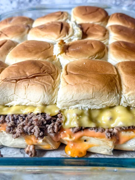Let’s be honest: burgers can be a pain when you’re feeding more than a few people. These bake-all-at-once sliders skip the fuss and deliver all the classic cheeseburger flavor you love, with way less effort. The sweet rolls toast up perfectly, the beef stays juicy, and the melted cheese brings it all together.