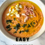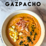 Another thing I love about this gazpacho is that itโs super customizable with protein add-ins like boiled egg, prosciutto, or shrimp. I love to blend up a quick portion for an easy work-from-home lunch on days when Iโm in a rush, trying not to cook or chop too much, and I need something fresh and delicious to eat.