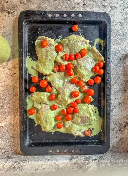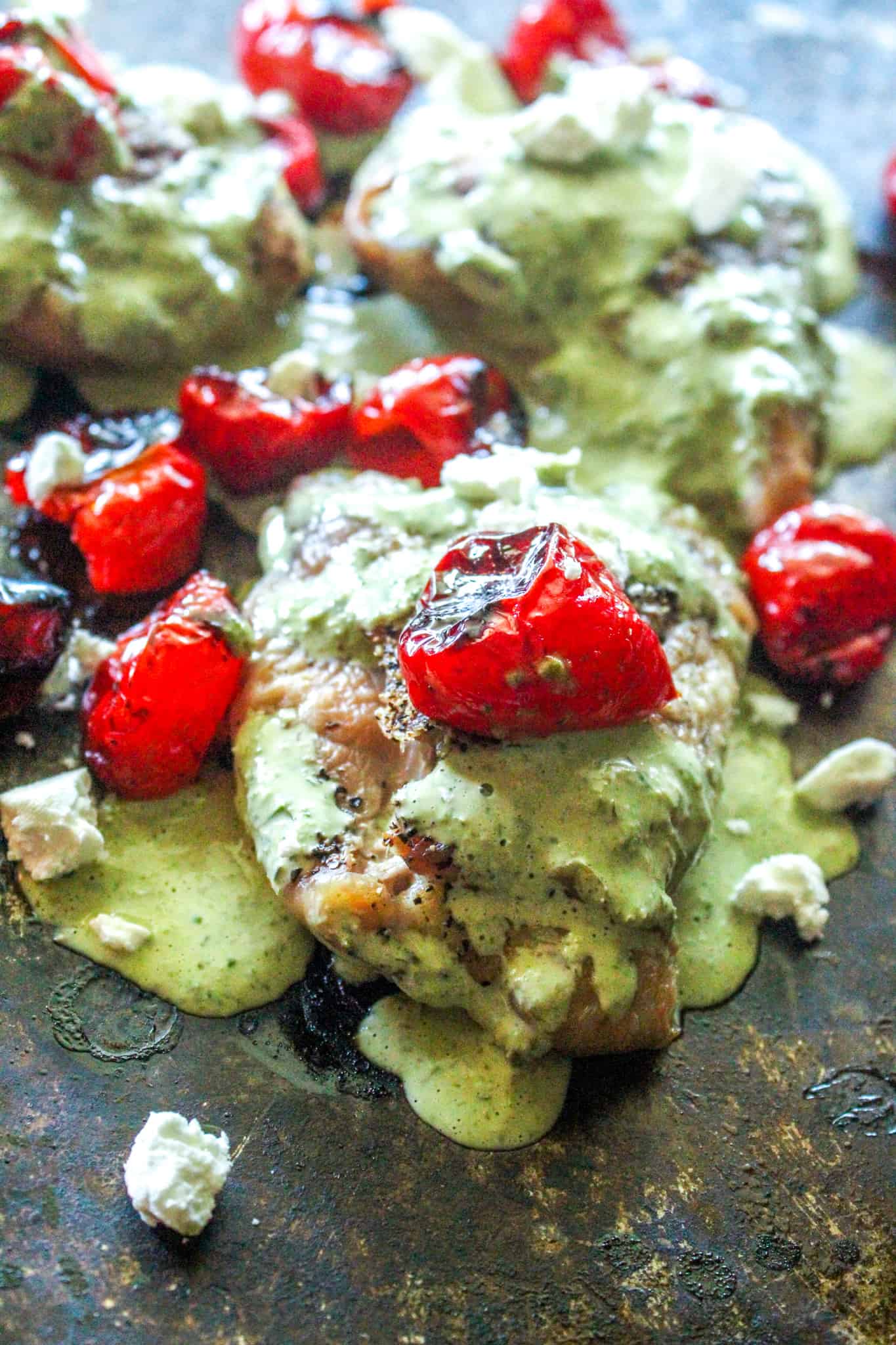 Sheet Pan Green Goddess Chicken with Goat Cheese and Peppadew Peppers