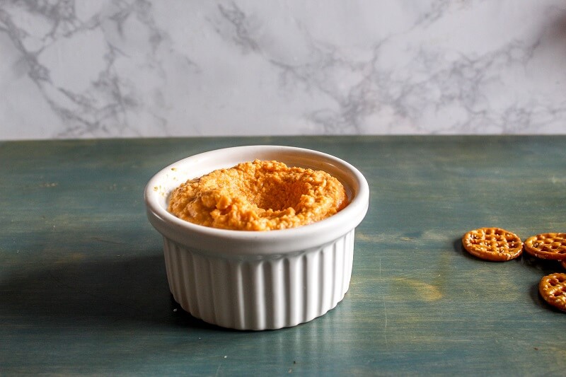 One thing I will say is important: don’t get tempted to try a fancy beer here, especially one that’s too hoppy. Something mellow in flavor, like a pilsner or a lager, really works best. Hoppier beers tend to give this cheese spread a dryness that overwhelms the cheesy cheddar flavor.