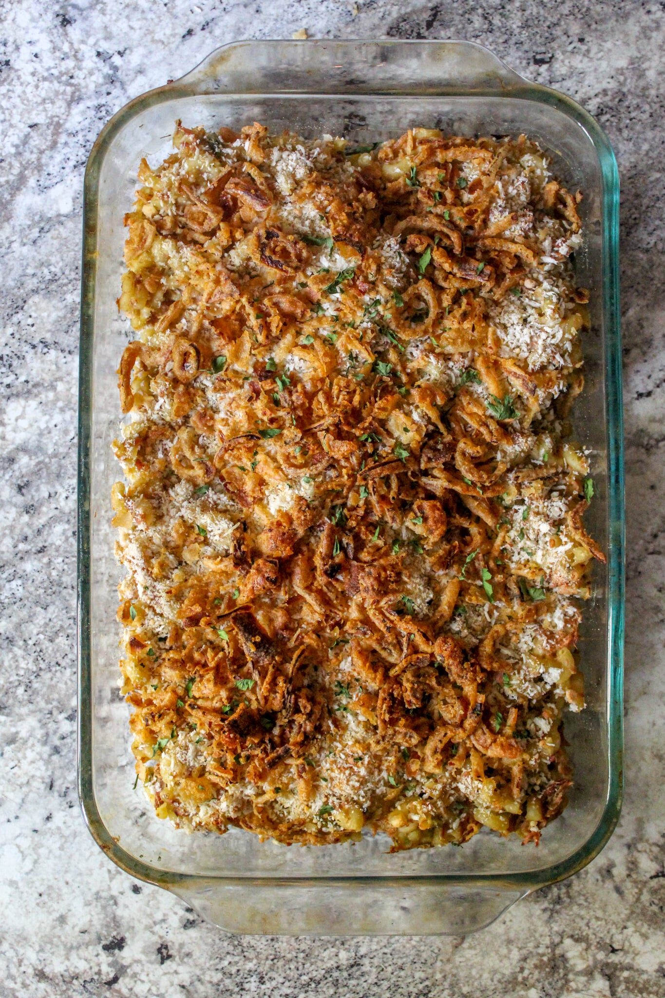 This is the ultimate in comfort dishes, especially as I was growing up in the Midwest. I prefer the creaminess that comes from making the sauce from scratch, but if you’re short on time, you can make it the old-fashioned way: Swap 2 cans of cream of mushroom soup, thinned with a little water, for the butter, flour, chicken broth, and cream mixture.