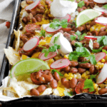 Top these sheet pan nachos with any extra veggies you have lying around! I love fresh corn and radish with avocado and hot sauce, but you can add zucchini, tomatoes, even wilted spinach.