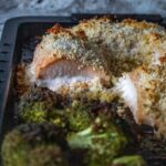 Place the pan in the oven and bake 20 minutes, until the fish is cooked through, the breadcrumbs have begun to brown, and the broccoli is softened and browned.