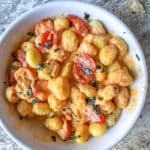 Toss gnocchi, tomatoes, olive oil, garlic cloves, salt, pepper, and red pepper flakes on a sheet pan.